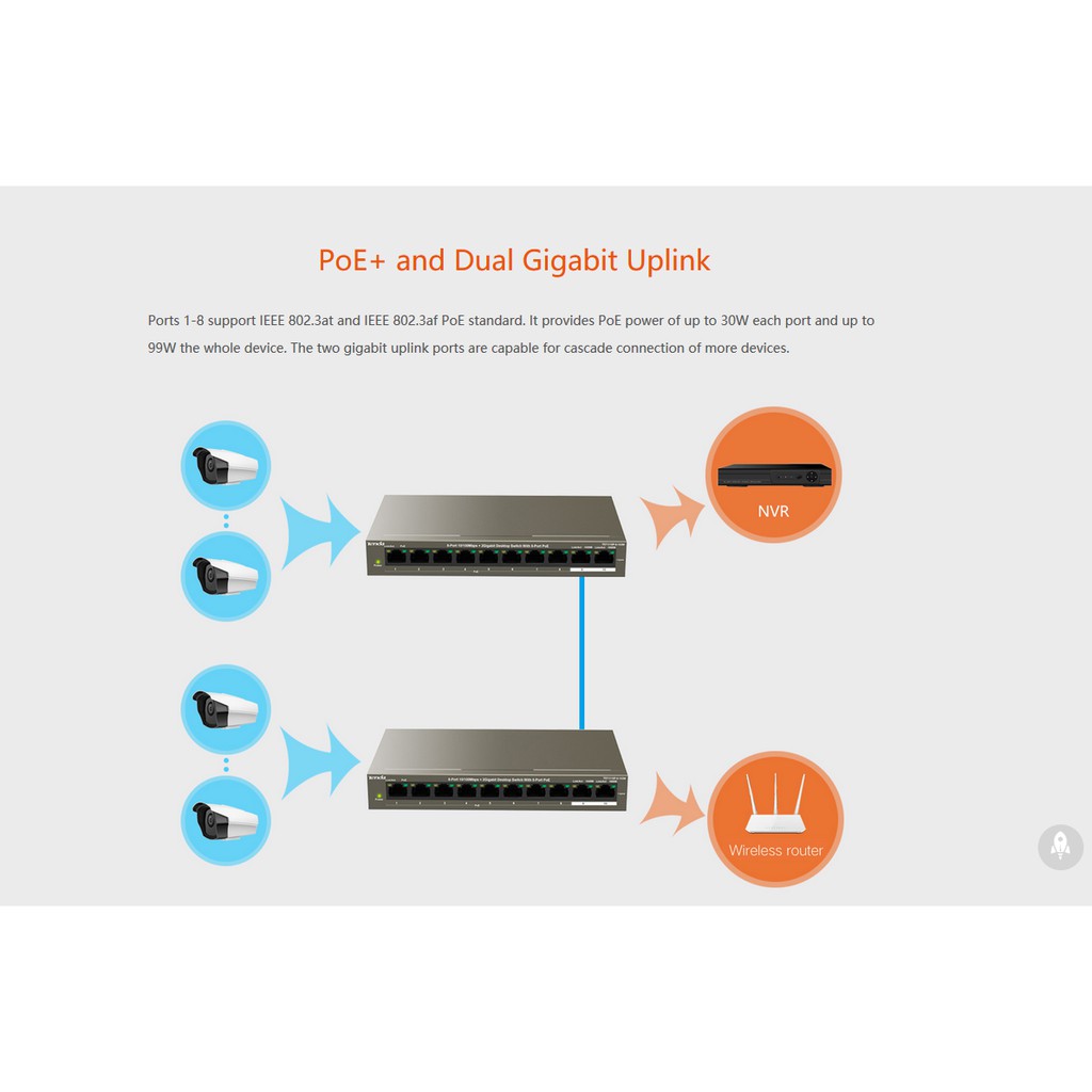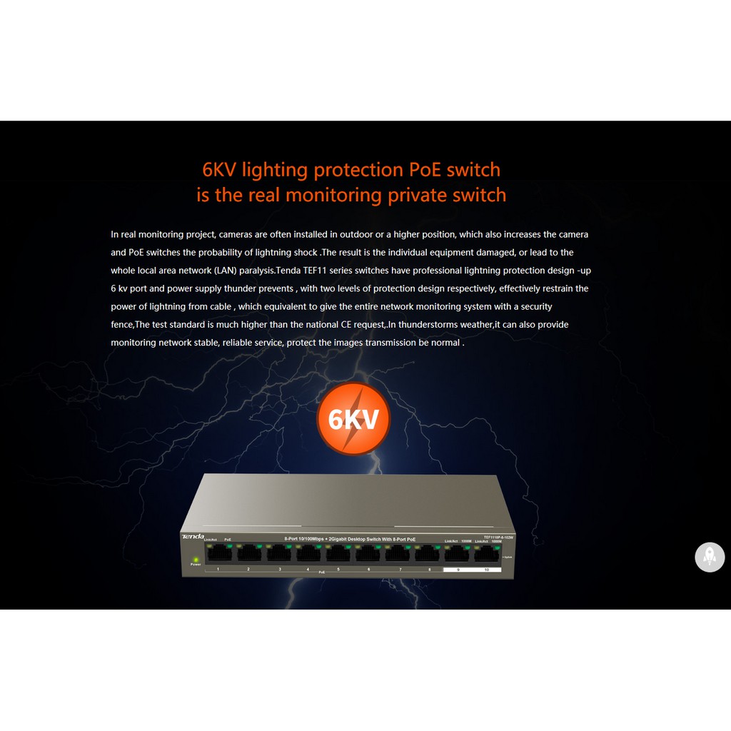 Giới thiệu Bộ chia mạng Switch POE Tenda TEF1110P-102W ( Switch PoE 8p 10/100 +2P Gigabit )Superpower - Hàng chính hãng