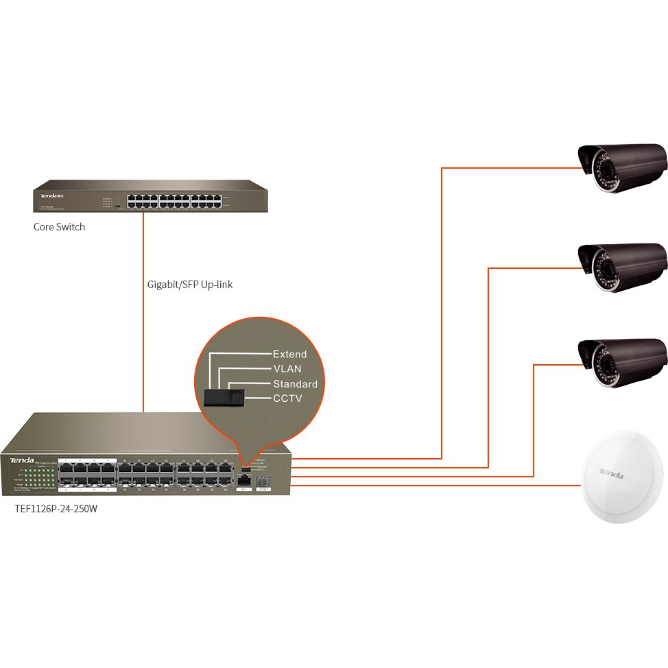 + CCTV: 1-8 cổng hỗ trợ QoS , Nếu nhiều camera IP được kết nối với công tắc, bạn nên bật chế độ này và kết nối cổng G1 hoặc SFP1 của công tắc này với thiết bị ngược dòng , như máy tính giám sát. Điều này đảm bảo phát lại video mượt mà hơn.