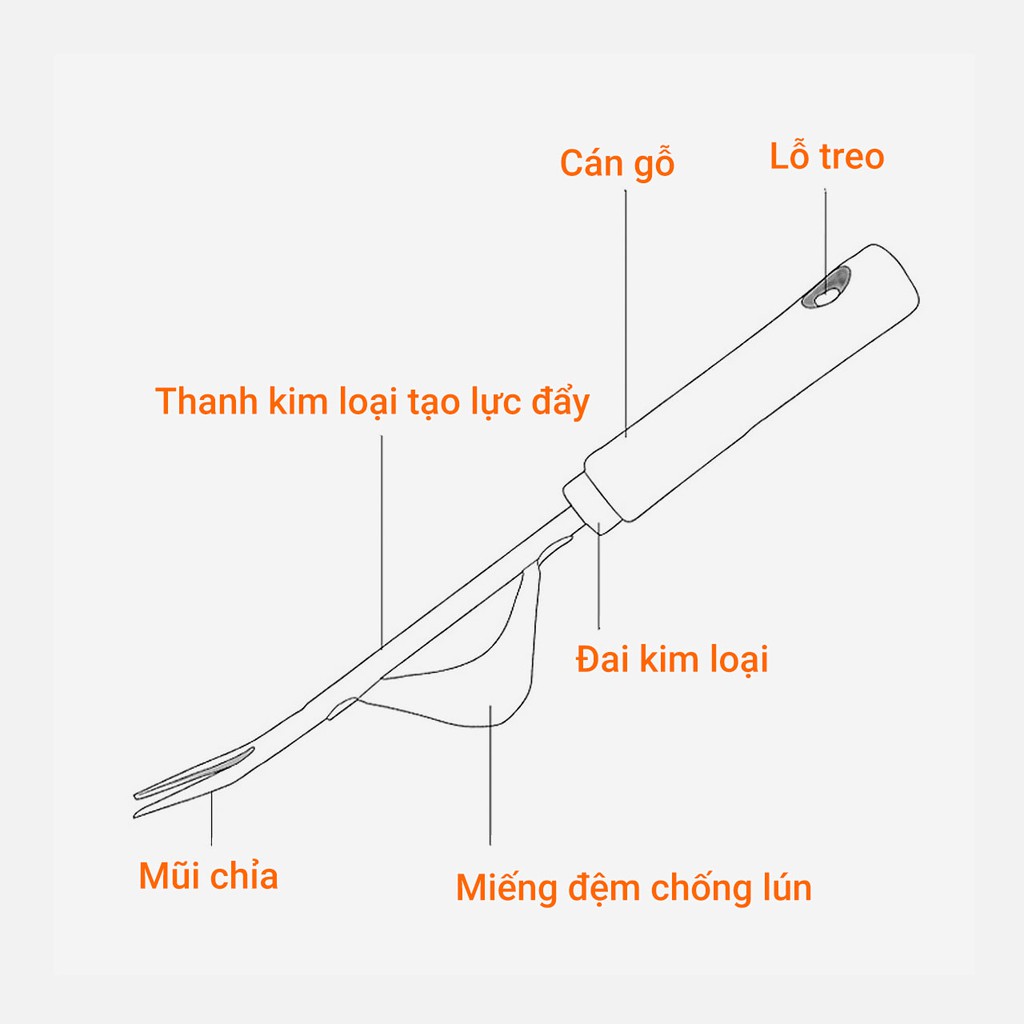 Giới thiệu Chỉa nhổ cỏ sâu đánh bật rễ cái bằng thép không gỉ cán gỗ