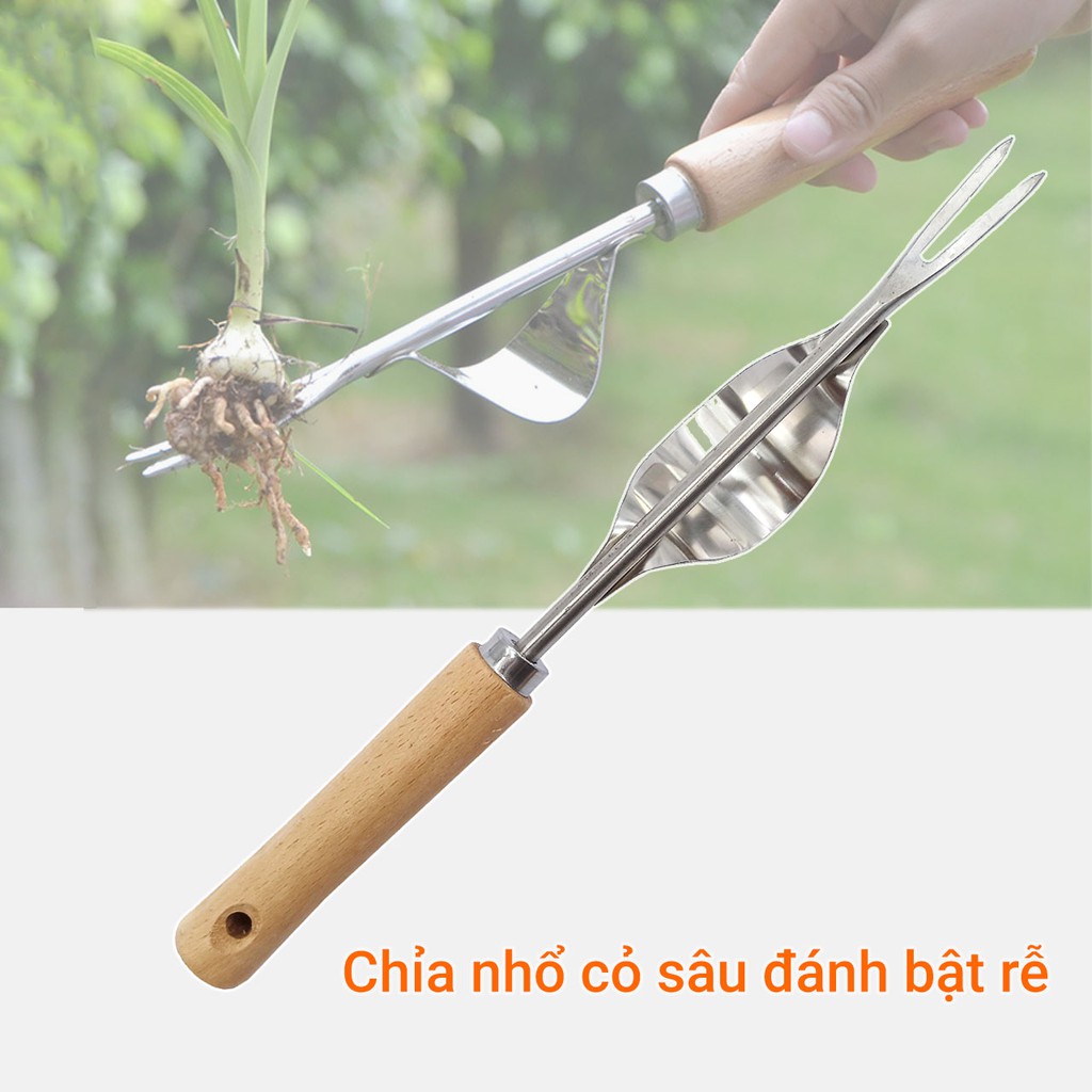 Chỉa nhổ cỏ sâu đánh bật rễ cái bằng thép không gỉ cán gỗ