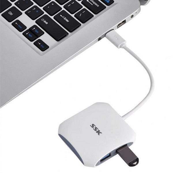 Bộ chia OTG typeC ra 4 cổng USB 3.0 SSK SHU810 đa thiết bị cùng lúc - tốc độ 5Gbps (Trắng)