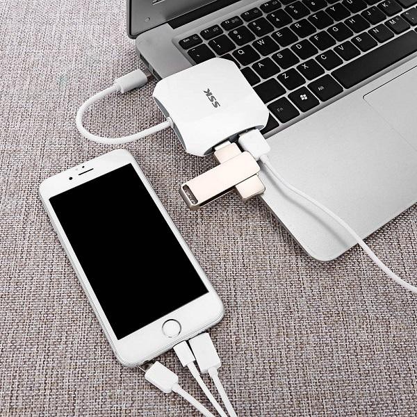 Giới thiệu Bộ chia OTG typeC ra 4 cổng USB 3.0 SSK SHU810 đa thiết bị cùng lúc - tốc độ 5Gbps (Trắng)