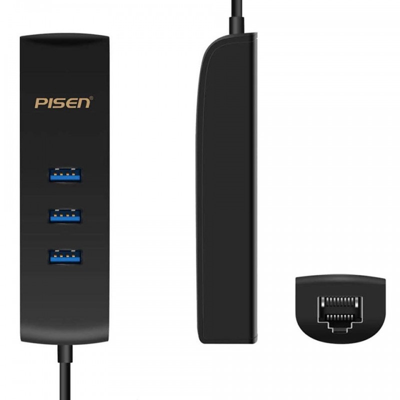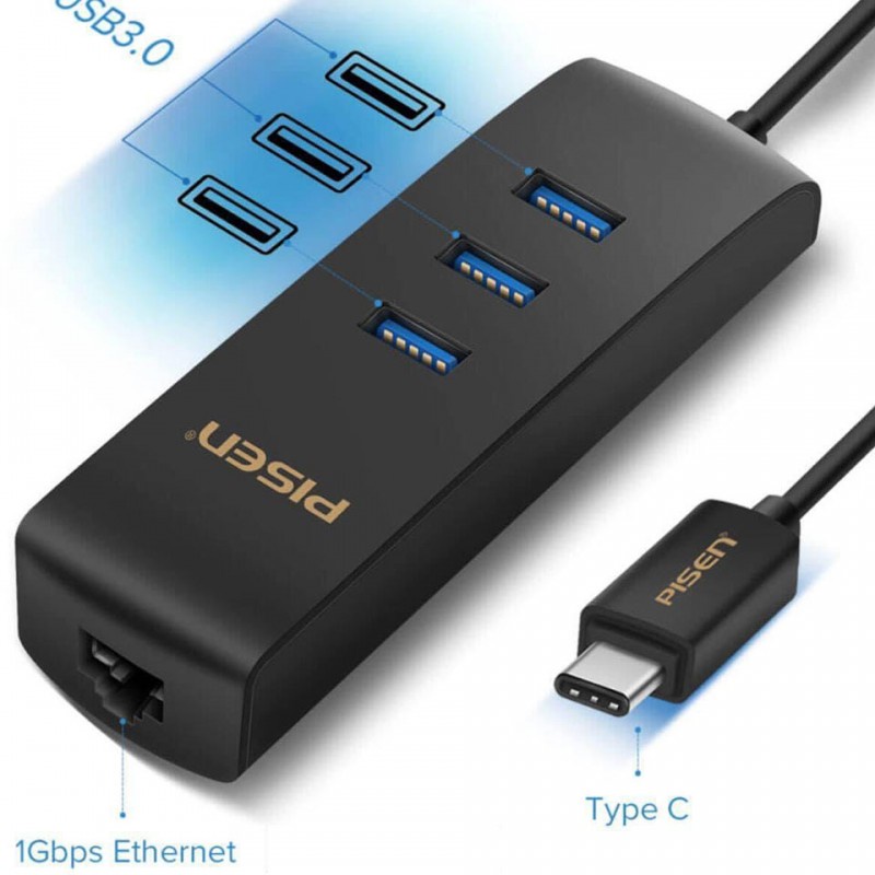 Bộ chia PISEN Type-C 4 trong 1 (USB3.0x3, LAN x1 ) - (TS-E116) - Hàng chính hãng