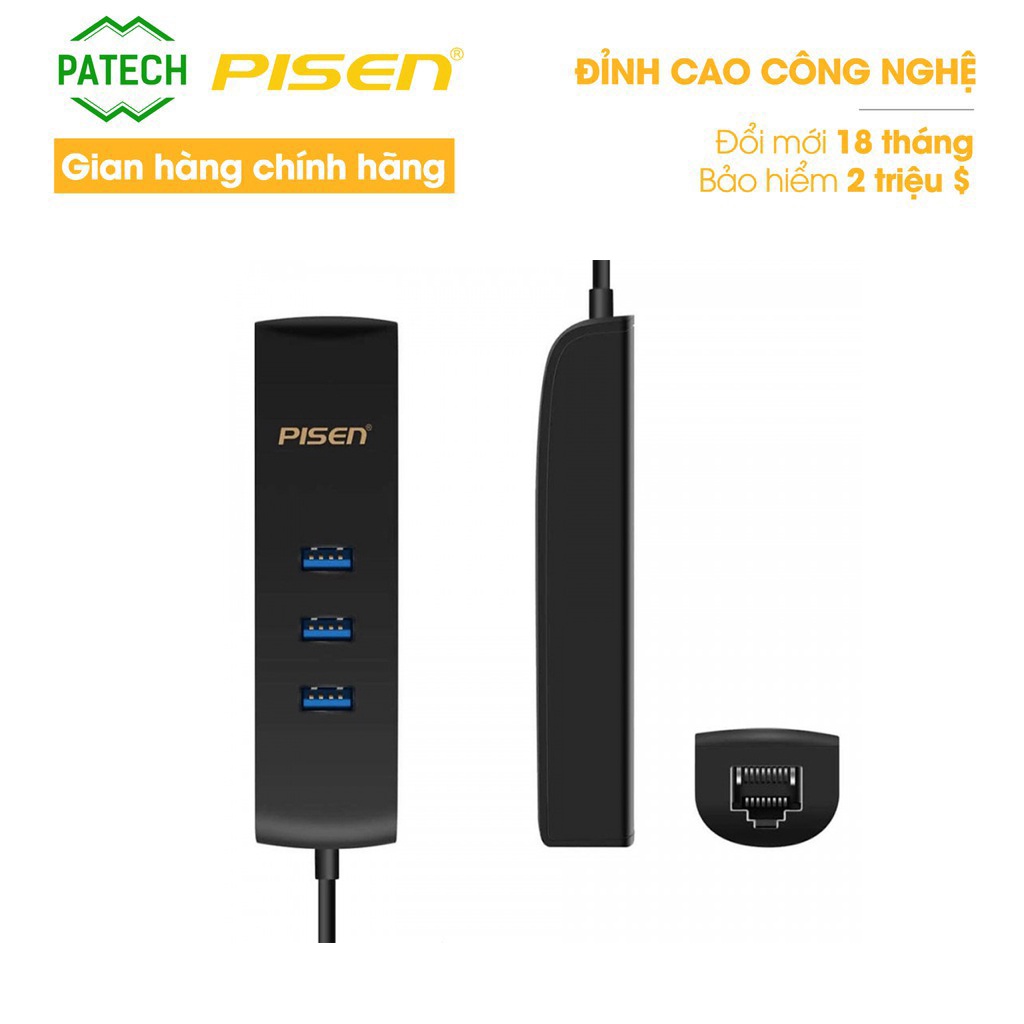 Máy tính & Laptop > Phụ Kiện Máy Tính > Bộ chia cổng USB & Đọc thẻ nhớ || Bộ chia PISEN Type-C 4 trong 1 (USB3.0x3, LAN x1 ) - (TS-E116) - Hàng chính hãngCòn hàng