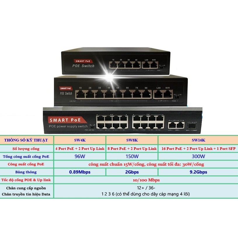 Giới thiệu Bộ Chia POE Smart Switch [4 - 8 - 16] + 2 Cổng (Port ) Up Link 48V Cho Camera IP, Thiết Bị Mạng Hikvison dahua tplink