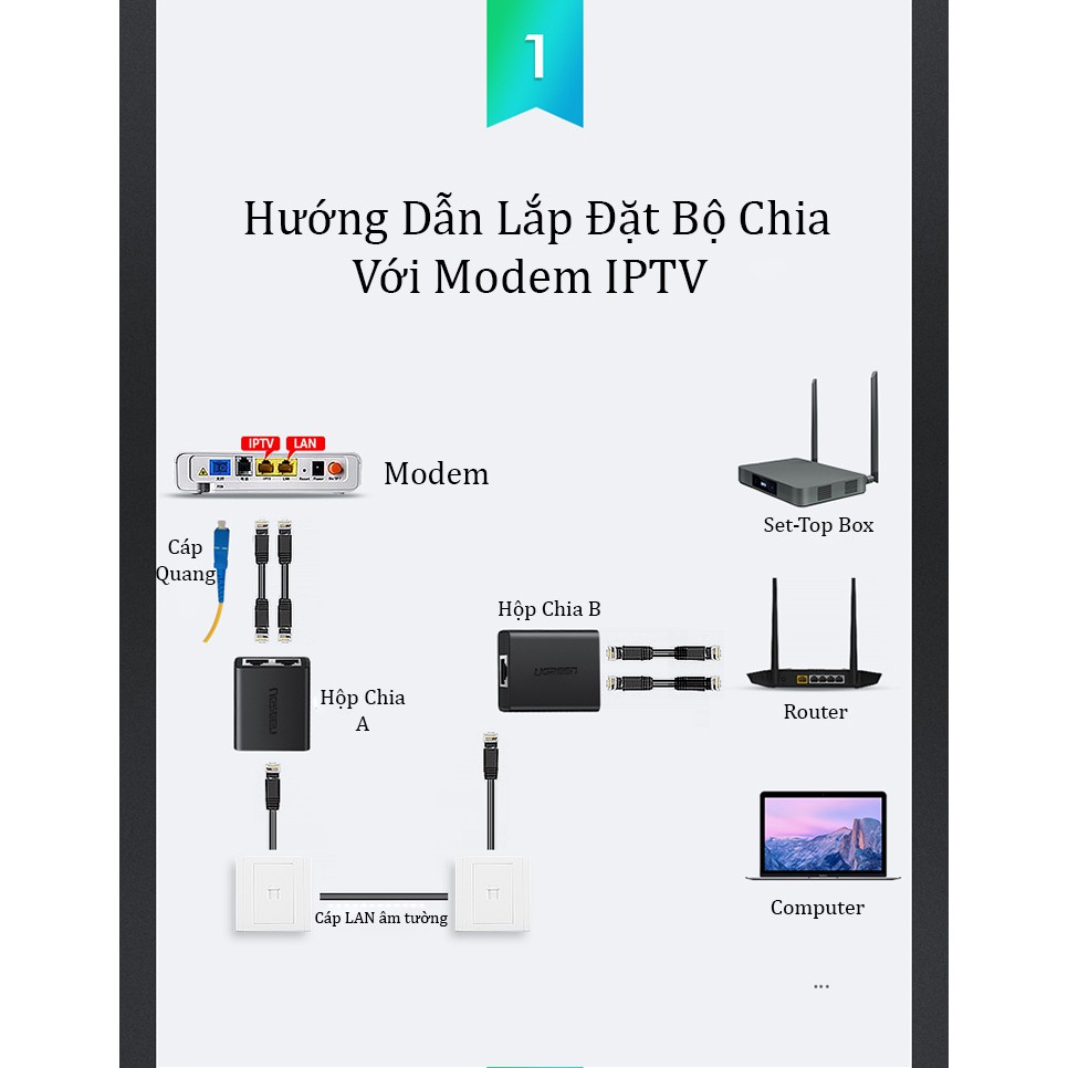 Máy tính & Laptop > Thiết Bị Mạng > Bộ chia mạng || Bộ chia RJ45 + IPTV Cao Cấp Chính Hãng Ugreen 50923 CM210 (Bộ 2 cái)Còn hàng