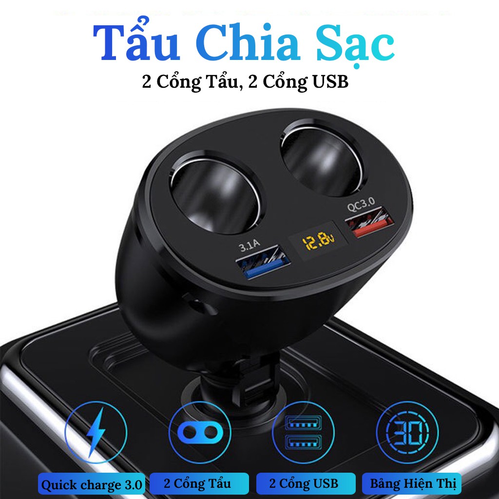 Bộ Chia Tẩu Sạc Oto Không Dây - Chia 2 Nguồn Tẩu 1 Cổng Sạc 3.1A Và 1 Cổng Sạc Nhanh QC3.0 VERSION 2