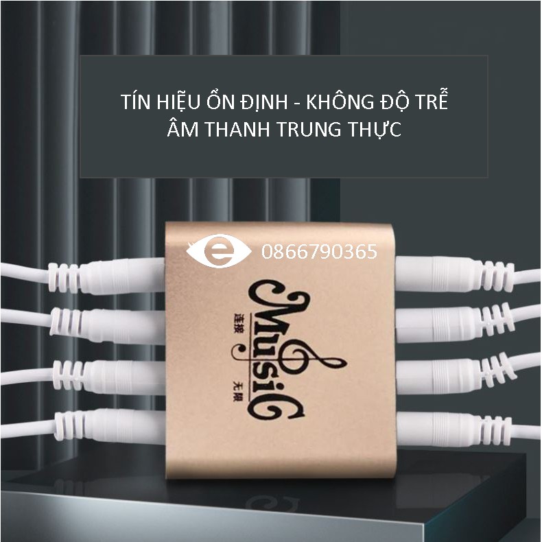 -Bạn cũng có thể kết nối receiver của micro không dây hoặc từ soundcard xử lý âm thanh thông qua cable âm thanh vào bộ chia.
