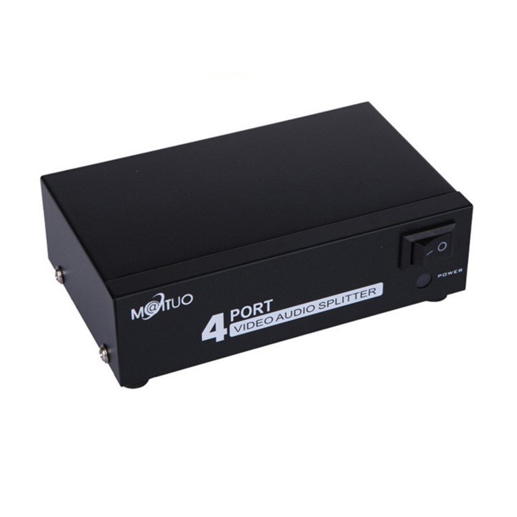 Bộ chia tín hiệu cổng AVBộ chia AV cho phép chia thiết bị có 1 cổng AV thành 4đầu AV cắm vào 4 thiết bị có cổng AV thông quacáp AV mà không làm suy hao tín hiệu.