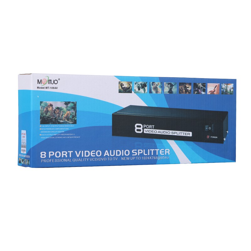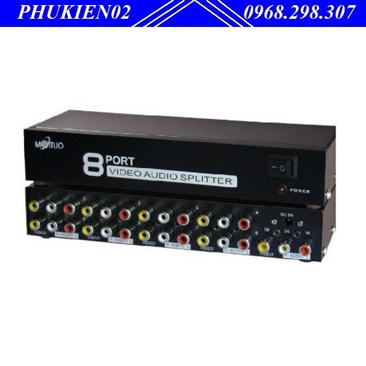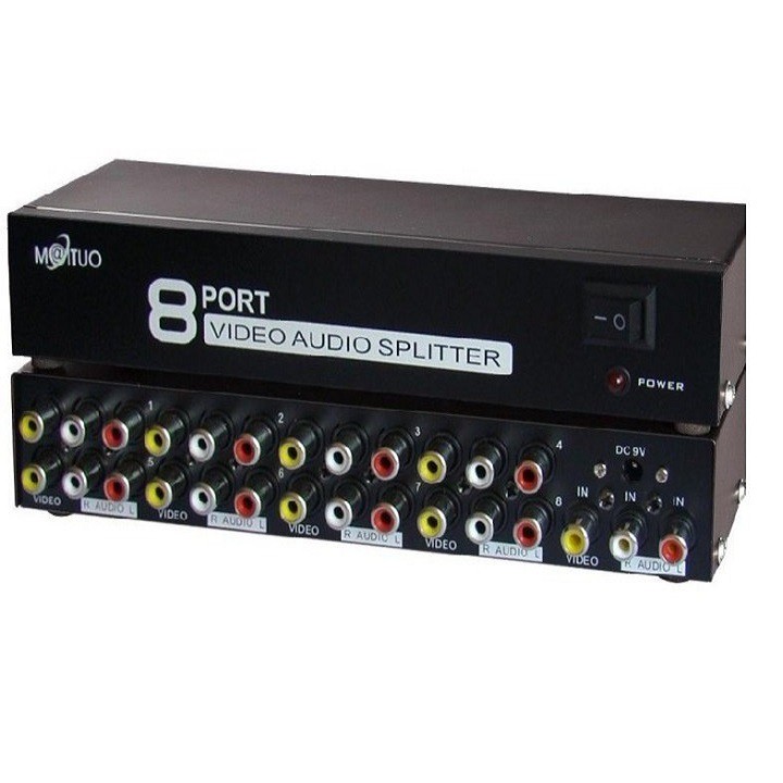 Bộ chia tín hiệu AV ( Video & Audio) ra 8 đường dùng để chia các tín hiệu âm thanh và hình ảnh.Một đường ra 8 đường khác nhau, chất lượng tín hiệu đầu ra không thay đổi so với đầu vào.