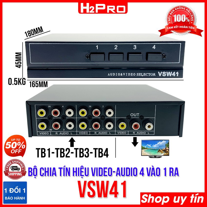 Bộ chia tín hiệu av 4 vào-1 ra VSW41 H2Pro, bộ chia tín hiệu audio và video cao cấpĐánh giá về Bộ chia tín hiệu av 4 vào-1 ra VSW41: