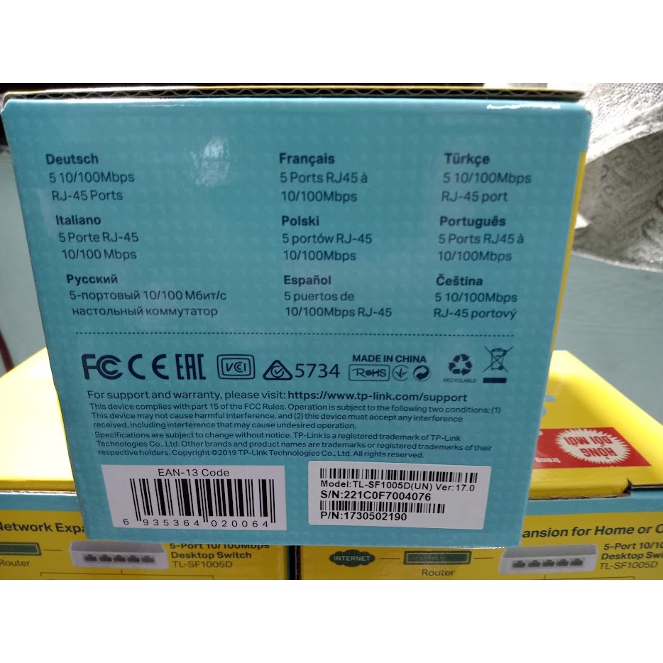 Máy tính & Laptop > Thiết Bị Mạng > Bộ chia mạng || Bộ Chia Tín Hiệu Để Bàn 5 cổng 10/100Mbps TL-SF1005D TP Link chính hãngCòn hàng