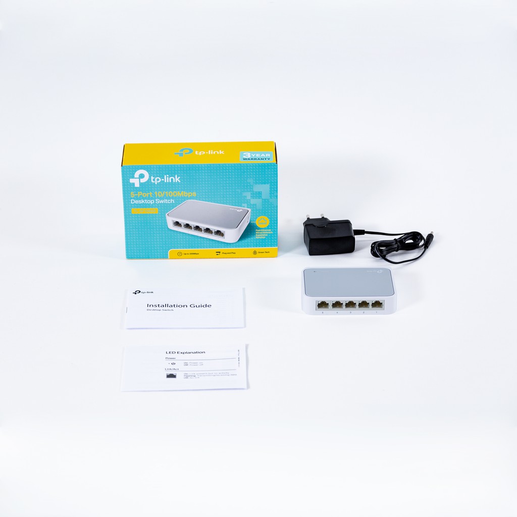- 5 cổng RJ45 tự động tương thích tốc độ 10/100Mbps (Auto-Negotiation) và hỗ trợ chuyển đổi MDI/MDIX
