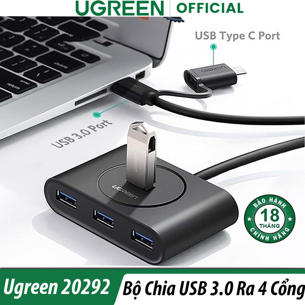Bộ Chia Tín Hiệu USB 3.0 4 Cổng Hỗ Trợ OTG Ugreen 20292 Chính Hãng🔰MÔ TẢ SẢN PHẨM