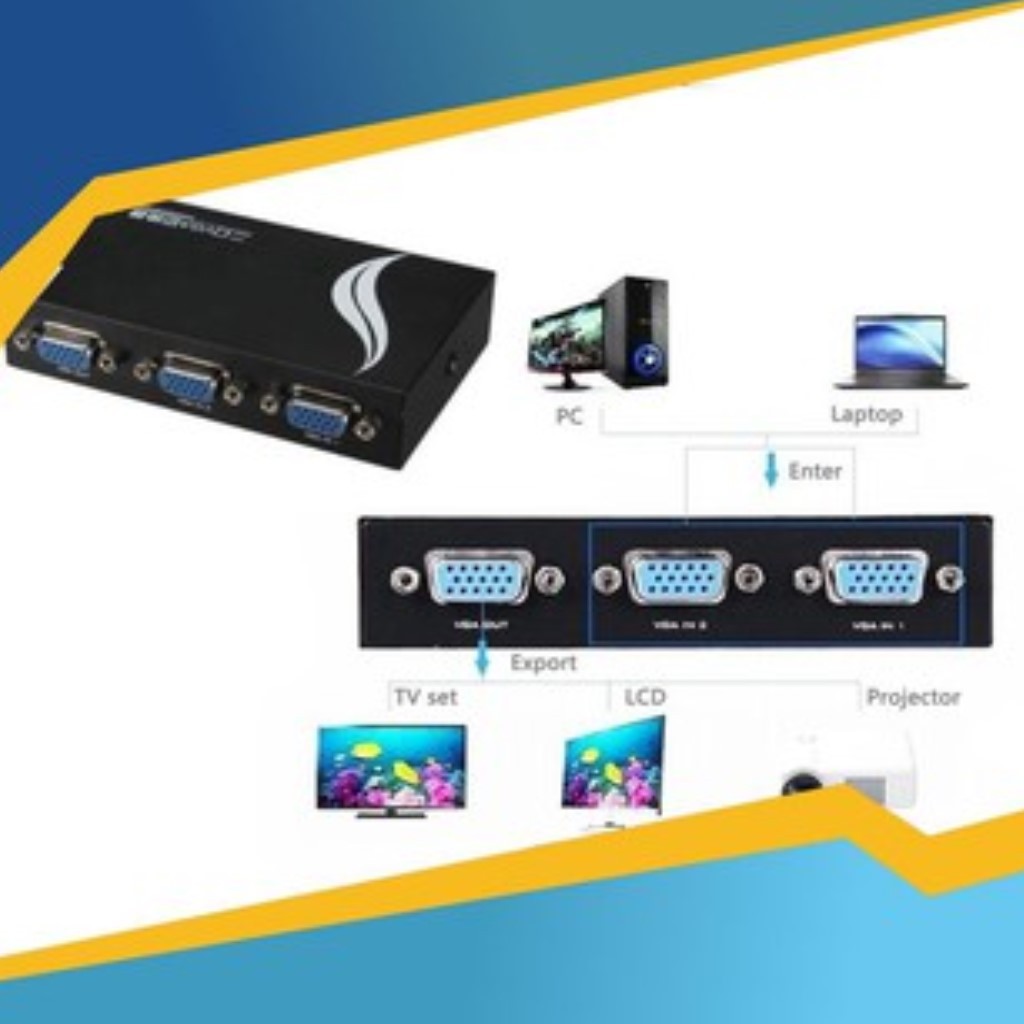 Bộ Chia Tín Hiệu VGA 2 Cổng Vào 1 Cổng Ra Màn Hình LCD, Máy Chiếu