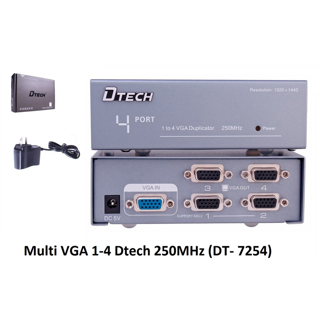 Bộ chia tín hiệu VGA từ 1 cpu ra nhiều màn hình VGA LCD DTECH , ra 2 màn hình DT 7252 , ra 4 DT 7254 250MHzIALLSHOPS - Đại lý chính thức của DTECH tại VN