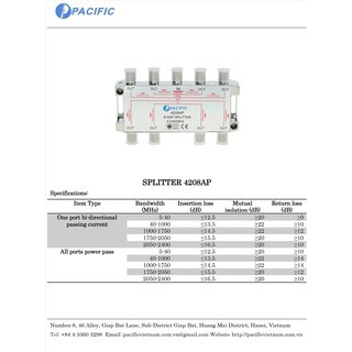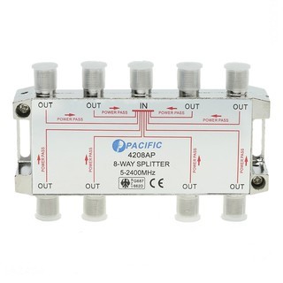 Bộ chia truyền hình cáp PACIFIC 1 Ra 8 Tivi - 4208APChia tín hiệu truyền hình cáp thường (Analog) và truyền hình cáp KTS HDTV, KTS SDTV, Bộ chia tín hiệu cao tần 5-2400 MHZ