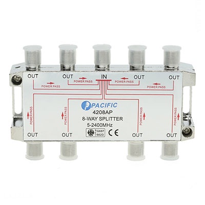Giới thiệu Bộ chia truyền hình cáp PACIFIC 1 ra 8, sử dụng cho tòa nhà cao ốc, khách sạn, nhà riêng, công ty, Chia 8 tín hiệu tivi