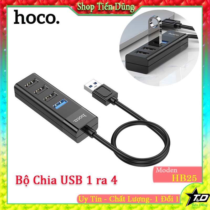 Bộ Chia USB 1 Ra 4 Cổng Hoco HB25 Chân Cắm USB Có 1 Cổng USB 3.0 và 3 cổng USB 2.0 hàng Chính Hãng