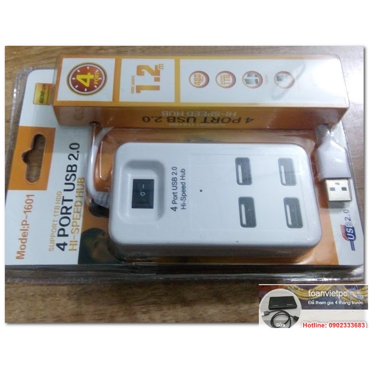 Speed USB 2.0 4 Port Hi SpeedHub Model P1601 - 480 mbps (Trắng hoặc đen)