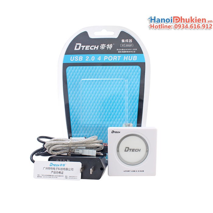 Máy tính & Laptop > Phụ Kiện Máy Tính > Bộ chia cổng USB & Đọc thẻ nhớ || Bộ chia USB 1 ra 4 USB 2.0 có nguồn ngoài Dtech DT-3004PCòn hàng