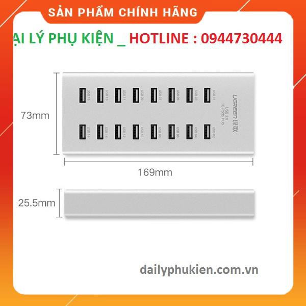Bộ chia USB 2.0 ra 16 cổng hỗ trợ nguồn ngoài DC 12V Ugreen 20298 dailyphukien