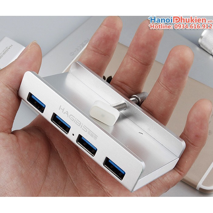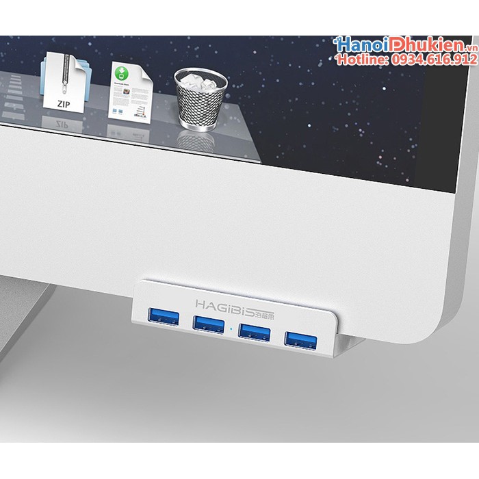 Bộ chia USB 3.0 - 1 ra 4 Hagibis chuyên dùng cho iMac, gắn màn hình, gắn cạnh bànBộ chia USB 3.0 (Hub USB 3.0) thương hiệu Hagibis chính hãng. Chuyên dùng cho Apple iMac, gắn màn hình LCD hoặc cạnh bàn làm việc.