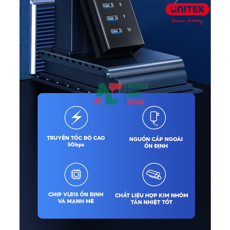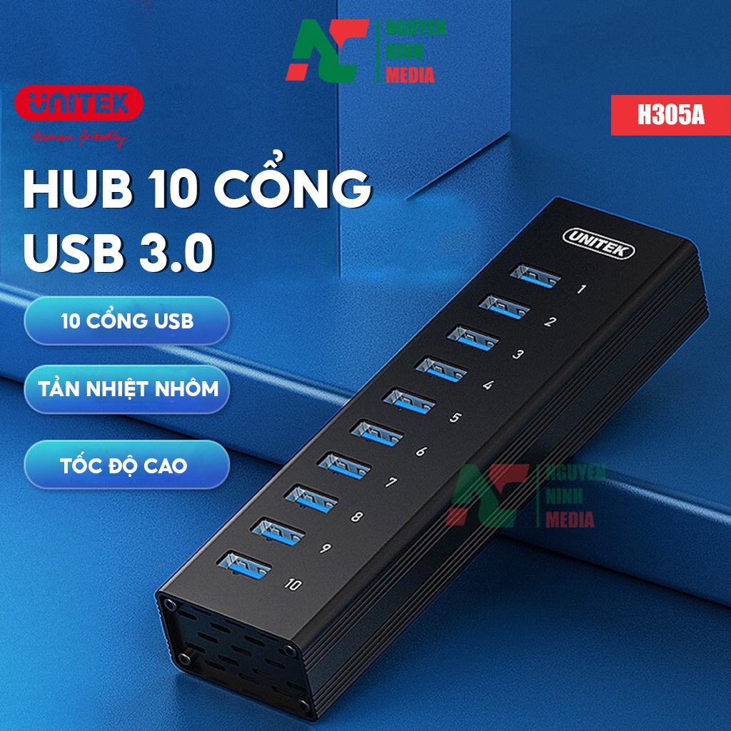 Máy tính & Laptop > Phụ Kiện Máy Tính > Bộ chia cổng USB & Đọc thẻ nhớ || Bộ Chia USB 3.0 10 Cổng UNITEK H305A Tốc Độ Cao 5Gbps - Hàng Chính HãngCòn hàng