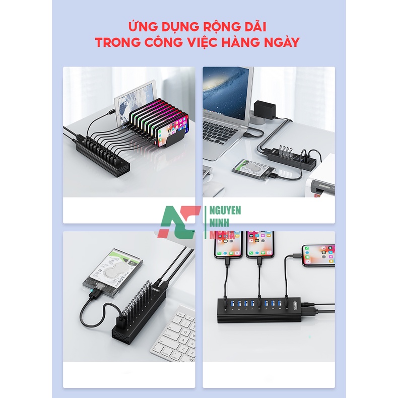 Bộ Chia USB 3.0 10 Cổng UNITEK H305A Tốc Độ Cao 5Gbps - Hàng Chính Hãng