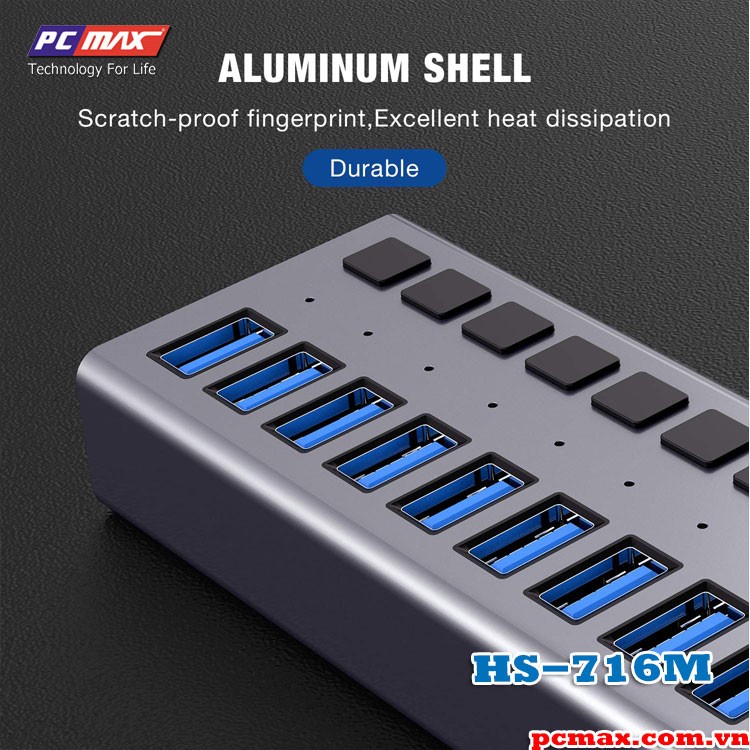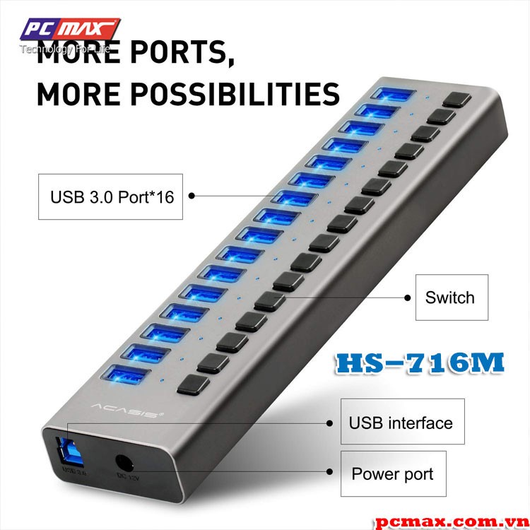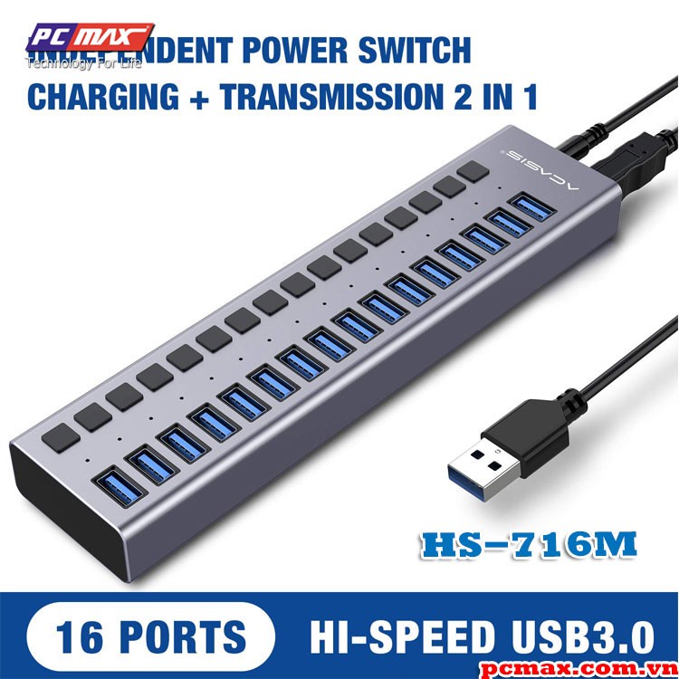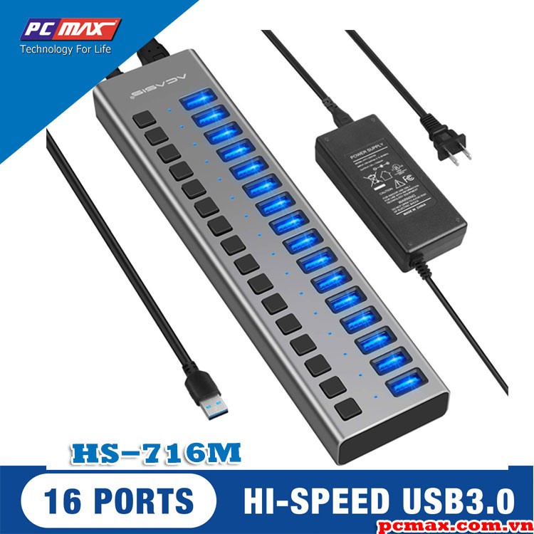 Bộ chia USB 3.0 16 port 90W hub - 10 cổng ACASIS HS-716M - Hàng chính hãng