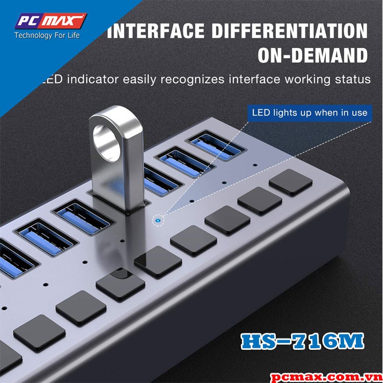 Máy tính & Laptop > Phụ Kiện Máy Tính > Bộ chia cổng USB & Đọc thẻ nhớ || Bộ chia USB 3.0 16 port 90W hub - 10 cổng ACASIS HS-716M - Hàng chính hãngCòn hàng