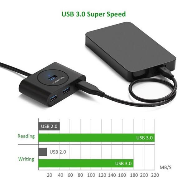 Bộ chia hub USB 3.0 Ugreen 20290 hỗ trợ truyền tải dữ liệu lên đến 5.0Mbps