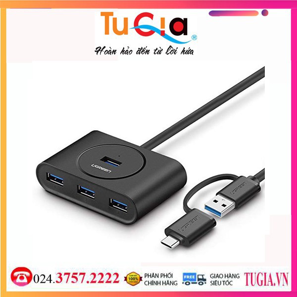 Máy tính & Laptop > Phụ Kiện Máy Tính > Bộ chia cổng USB & Đọc thẻ nhớ || Bộ Chia USB 3.0 4 Cổng + USB Type - C Ra 4 Cổng USB 3.0 UGREEN 40850 - Hàng Chính HãngCòn hàng