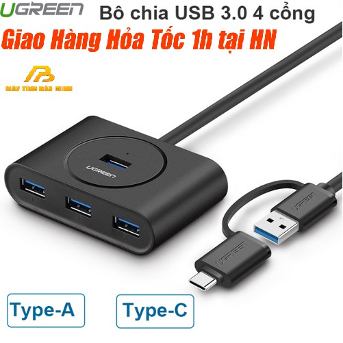 Máy tính & Laptop > Phụ Kiện Máy Tính > Bộ chia cổng USB & Đọc thẻ nhớ || Bộ Chia USB 3.0 4 Cổng + USB Type - C Ra 4 Cổng USB 3.0 UGREEN 40850 - Hàng Chính HãngCòn hàng