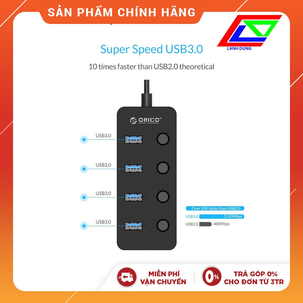 Máy tính & Laptop > Phụ Kiện Máy Tính > Bộ chia cổng USB & Đọc thẻ nhớ || Bộ chia USB 3.0 Orico W9PH4 - Hàng chính hãngCòn hàng