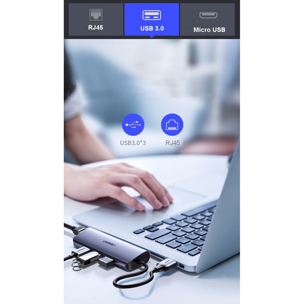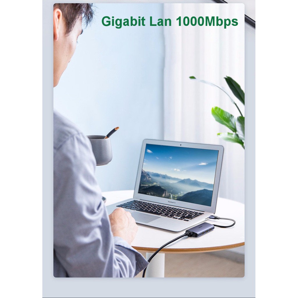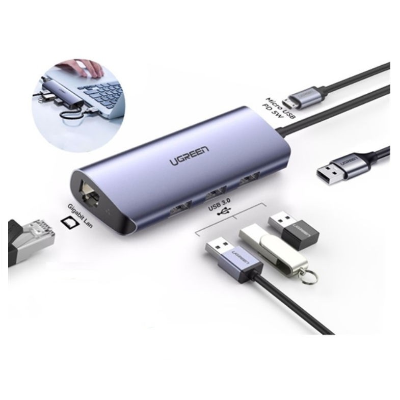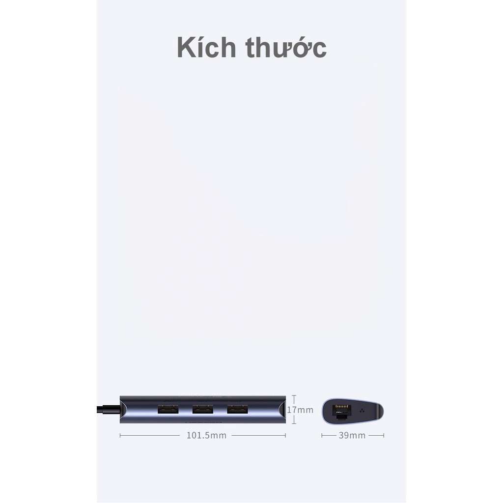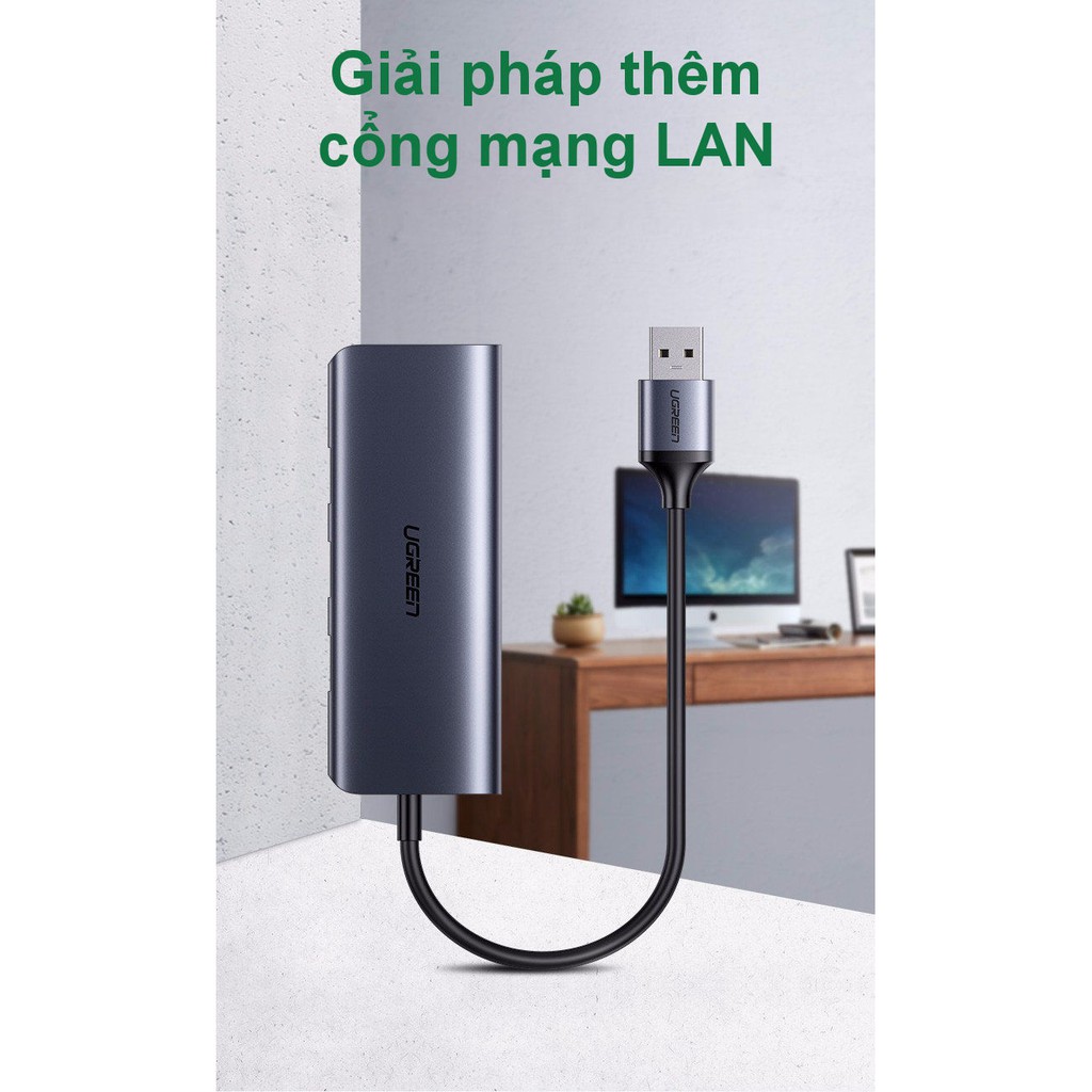Giới thiệu Bộ chia USB 3.0 ra 3 cổng USB 3.0 + Lan Gigabit 1000Mbps Ugreen 60719