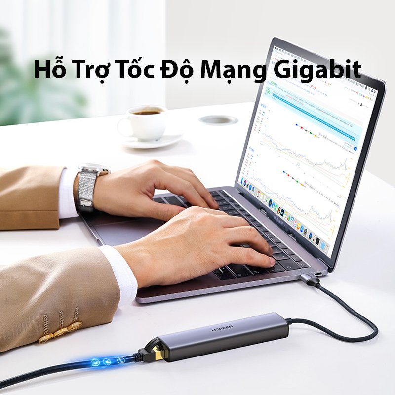 Bộ chia USB 3.0 ra Lan Gigabit +3 Hub USB 3.0 Cao Cấp Ugreen 20915 Chính Hãng CM475