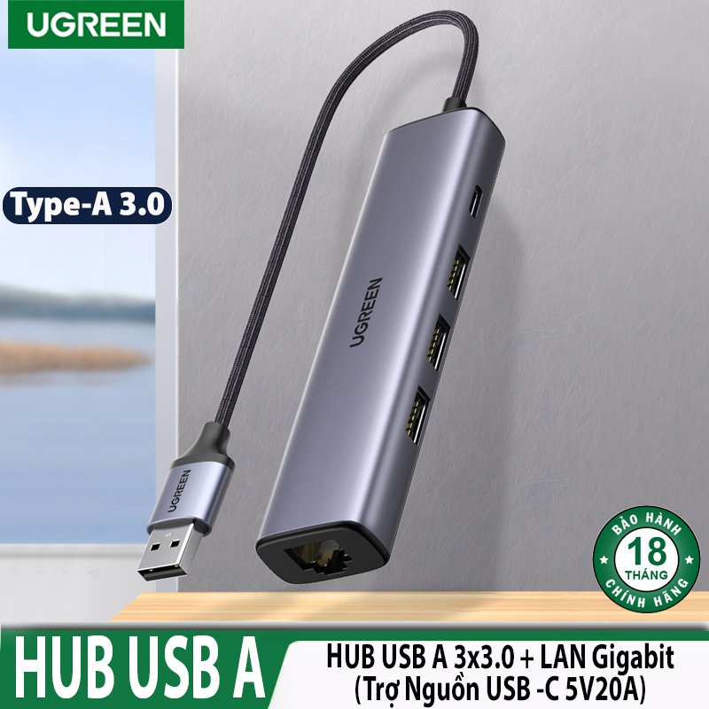 Máy tính & Laptop > Phụ Kiện Máy Tính > Bộ chia cổng USB & Đọc thẻ nhớ || Bộ chia USB 3.0 ra 3 USB + Lan Gigabit PC 5V 2A Cao Cấp Ugreen 20915 Chính Hãng CM475Còn hàng