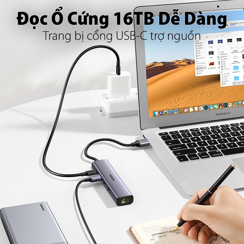 Giới thiệu Bộ chia USB 3.0 ra Lan Gigabit +3 Hub USB 3.0 Cao Cấp Ugreen 20915 Chính Hãng CM475