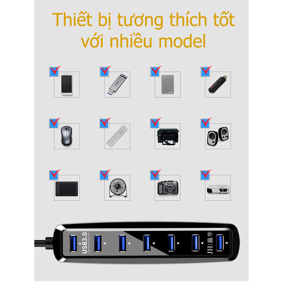 Máy tính & Laptop > Phụ Kiện Máy Tính > Bộ chia cổng USB & Đọc thẻ nhớ || Bộ chia USB 3.0 ra 7 cổng USB 3.0 có nguồn rời - Jinghua Z432Còn hàng
