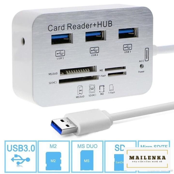 Bộ Chia USB 3 Cổng 3.0 + Đầu Đọc Thẻ Nhớ Đa Năng - HUB USB 3.0/3.1 + Card Reader 5/10 Gbps
