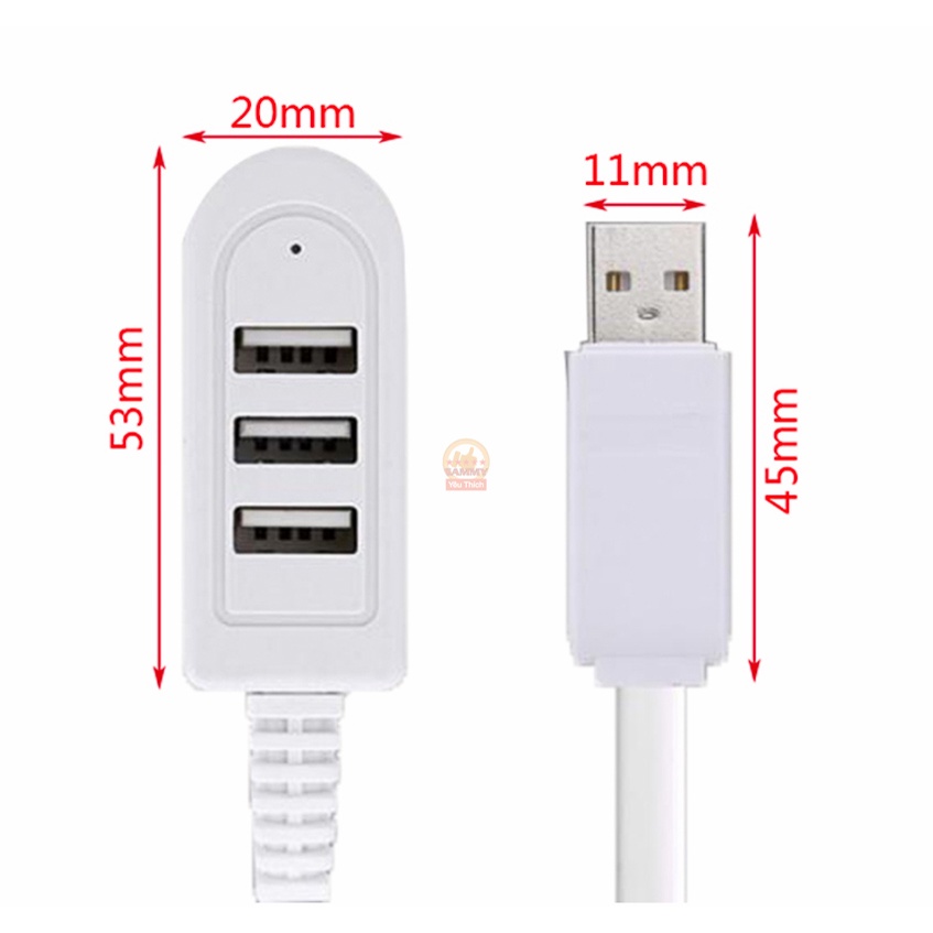 Bộ chia USB 3 Cổng Sạc và truyền dữ liệu dây cáp dài 1.2 mét 1USB3