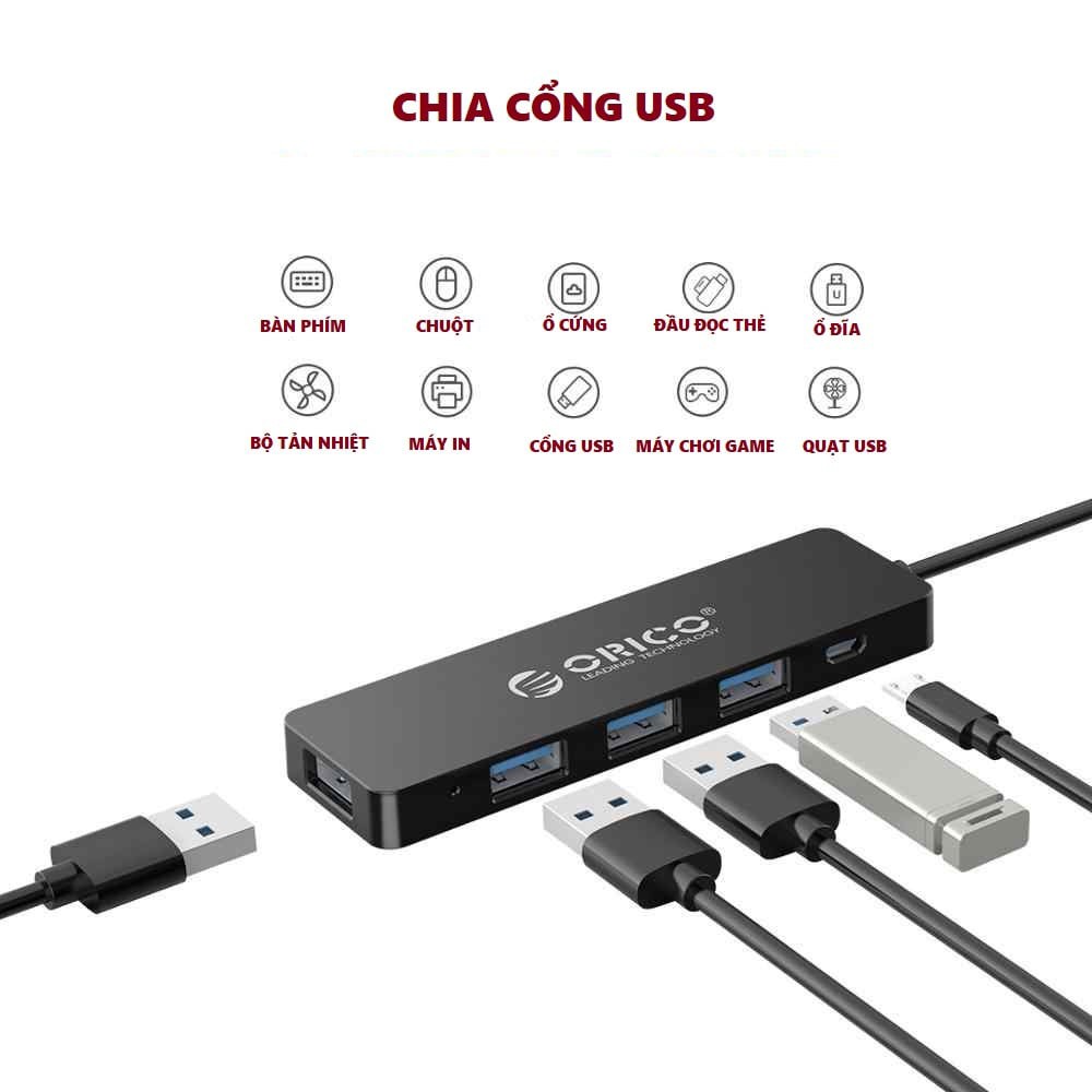 👉 Bộ chia USB 4 cổng ORICO FL01 2.0 tiện lợi dùng cho máy tính dễ dàng thêm 4 cổng USB tốc độ cao cho máy tính xách tay, Ultrabook và Desktop.