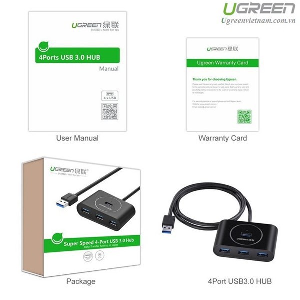 Giới thiệu Bộ chia HAUB USB 4 cổng Ugreen 20290 chuẩn USB 3.0 dài 0,5m cao cấp chuẩn Hàng chính hãng bảo hành 18 tháng