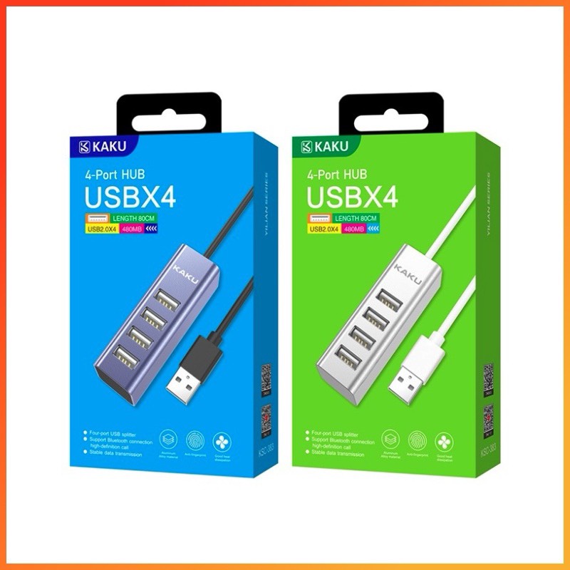 - Hub USB KAKU KSC-383 với 4 cổng USB 2.0 và một đầu USB để kết nối với cổng USB trên máy tính. KAKU KSC-383 hỗ trợ chia cổng usb trên máy tính thành 4 cổng usb trên hub. Ngoài việc hỗ trợ truyền dữ liệu thì Hub còn giúp bạn kết nối với những thiết bị sử dụng cổng USB khác. Như quạt tản nhiệt, USB, chuột, lót chuột rgp, fan mini, đầu đọc thẻ nhớ…