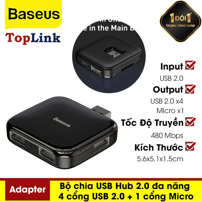 Bộ Chia USB Hub 2.0 Đa Năng 4 Cổng USB 2.0 + 1 Cổng Micro - Thương Hiệu BaseusChào mừng bạn đến với TOPLINK - Thế Giới Phụ Kiện