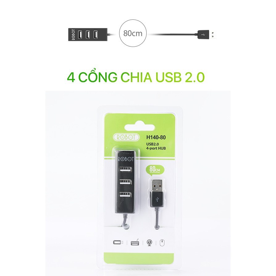 Bộ chia USB HUB 4 cổng ROBOT H140-80 dài 80cm , đa năng truyền dữ liệu tốc độ cao ổn định - HÀNG CHÍNH HÃNG