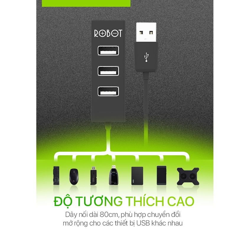Bộ chia USB HUB 4 cổng ROBOT H140-80 dài 80cm , đa năng truyền dữ liệu tốc độ cao ổn định - HÀNG CHÍNH HÃNG