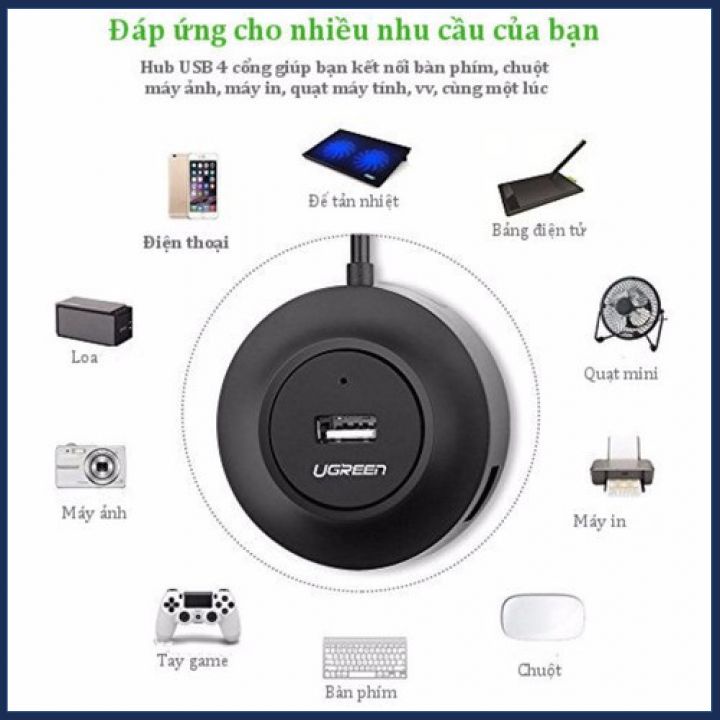 - Hub USB Ugreen 4 Cổng USB 2.0 20277 là thiết bị cho phép bạn kết nối nhiều thiết bị USB vào một cổng USB duy nhất. Sau đó, kết nối bàn phím, chuột, máy ảnh,.. trên máy tính của bạn cùng một lúc.