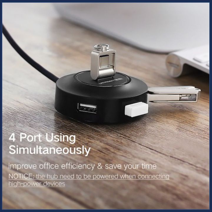 - Ngoài ra, Hub USB Ugreen 4 cổng USB còn bổ sung cổng Micro USB cấp thêm điện cho thiết bị yêu cầu dòng cao